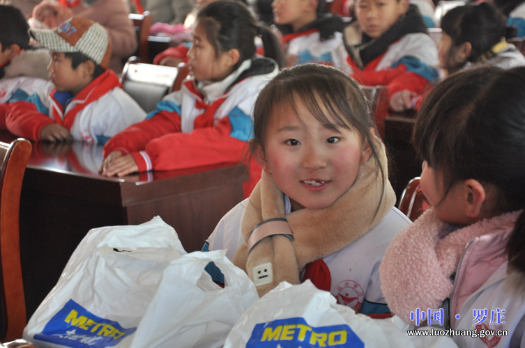 1月12日,区妇联“小红伞”助童爱心企业麦德龙临沂罗庄商城携手爱心人士走进黄山镇小学。