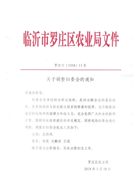 关于调整妇委会的通知